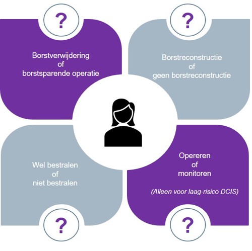 Vrouwen met DCIS komen voor één of meerdere behandelkeuzes te staan, namelijk: