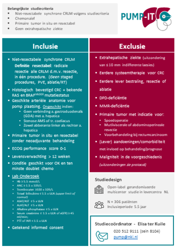 • PUMP-IT: inductiebehandeling bij niet-resectabele levermetastasen (fase III) – verrichter AVL