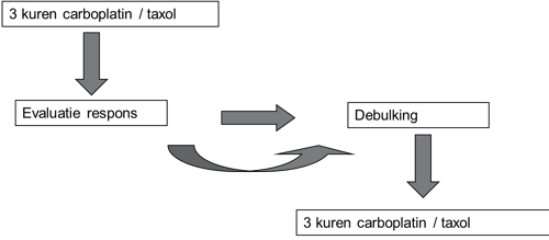 Bij een debulkingoperatie probeert de gynaecoloog alle zichtbare tumor te verwijderen. U zult na de operatie chemotherapie krijgen. Daarmee kan de kans op terugkeer van de ziekte worden verminderd. Er kan ook besloten worden om te beginnen met chemotherapie. Dan wordt in principe na 3 kuren de operatie gedaan. Vervolgens worden weer 3 kuren chemotherapie gegeven. Dit wordt een intervaldebulking genoemd.