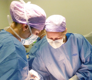 Gynaecologen geconcentreerd bezig met een operatie