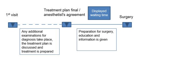 Find a visual overview of our average wait times (median) before surgery below. This is the time between the moment that all physicians and the patient agree on the best treatment option and the anesthesiologist's approval until the actual date of the surgery.
