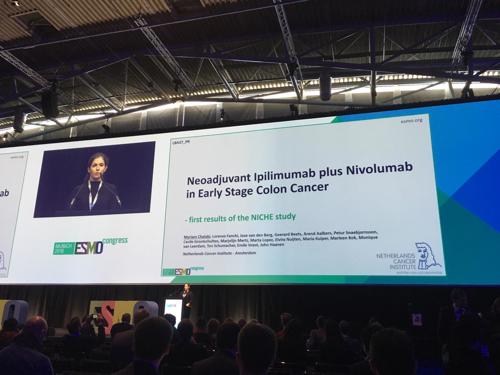Dr. Myriam Chalabi is internist-oncoloog op het gebied van maag-lever-darm tumoren bij het Antoni van Leeuwenhoek en leidt deze NICHE-studie. 'Uit een tussenevaluatie van deze studie blijkt dat bij alle zeven patiënten met microsatelliet instabiele darmkankers, wat bij 15% van de vroege darmkankers voorkomt, na vier weken de darmtumoren (nagenoeg) helemaal verdwenen waren. Dit is een zeer hoopvol eerste resultaat en dit is nooit eerder getoond. De volgende stap is om dit bij een veel grotere groep patiënten te testen.