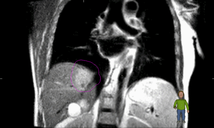 “Met de 3D-MRI-film zijn er geen markers meer nodig”, zegt radiotherapeut Edwin Jansen, die de eerste patiënt behandelde. Op een MRI-scan zijn leveruitzaaiingen namelijk wél zichtbaar “Dat is mooi, want patiënten vinden het een vervelende ingreep en ze kunnen pijn, infecties en nabloedingen krijgen.”