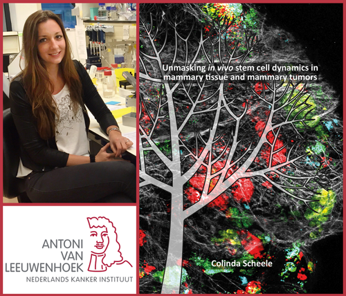 Onderzoeker Colinda Scheele, die 7 mei cum laude promoveerde, is eigenlijk een soort gedragsbioloog. Alleen observeerde ze in het Nederlands Kanker Instituut geen bonobo-aapjes of zebravinken, maar hele generaties stamcellen in zowel gezond borstweefsel als borsttumorweefsel van muizen. Dat deed ze live, in 3D, door een speciale microscoop. Hiermee ontdekte ze onder meer dat in een borsttumor slechts een klein deel van de tumorcellen, namelijk de kankerstamcellen, ervoor zorgt dat een tumor kwaadaardig en levensbedreigend wordt.