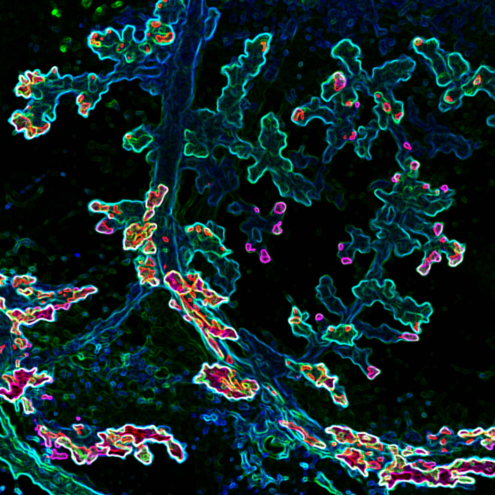 Maeve was niet de enige die direct een wereldbol zag in deze microscopische foto. “Het was opvallend dat anderen dezelfde associatie hadden, zonder dat ik ze erover verteld had”, zegt Maeve Grifhorst, stagiair in de onderzoeksgroep van Jacco van Rheenen. Een globe met een apocalyptisch randje dan wel. “Het lijkt inderdaad of de aarde in brand staat. En ik vond dat wel goed aansluiten bij hoe hard kanker het leven van zoveel mensen raakt.”