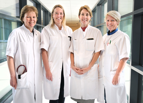 Op de foto: Winette van der Graaf, internist-oncoloog, Deborah van de Wal, arts & onderzoeker, Yvonne Schrage, chirurg-oncoloog en Anne Miek Koenen, verpleegkundig specialist