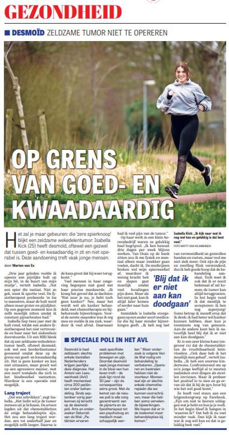 Patïent met desmoïd tumor vertelt haar ervaringsverhaal in De Telegraaf