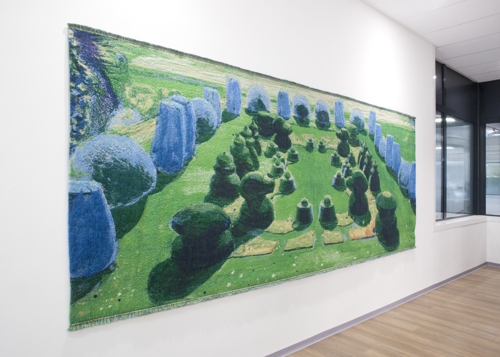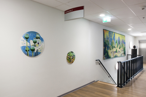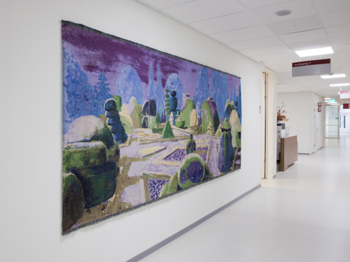 Voor vier locaties in het ziekenhuis maakte Arjan van Helmond wandkleden en keramieken tegels. Van Helmond liet zich voor The Garden of Life Flowers inspireren door planten waaruit grondstoffen voor medicijnen worden gewonnen en het werk dat in de apotheek van het ziekenhuis plaatsvindt. Arjan van Helmond [Deurne, 1971] is schilder en werkt de laatste jaren ook met keramiek en textiel. In 2017 won hij de Jeanne Oosting Prijs, oeuvreprijs voor figuratieve schilderkunst.