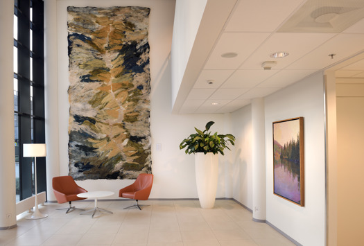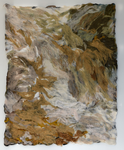 Claudy Jongstra (1963) is wereldwijd bekend om haar monumentale kunstwerken en installaties, waarvan de organische oppervlakken en genuanceerde tinten haar meesterlijke innovaties in de eeuwenoude techniek van het maken van wolvilt weerspiegelen. In 2001 vestigde Jongstra haar atelier in het landelijke noorden van Nederland, waar ze een ecologisch experiment in het lokale landschap begon. Met het behoud van een kudde zeldzame, inheemse Drentse heideschapen (het oudste ras in Noord-Europa) en het cultiveren van een gespecialiseerde botanische verzameltuin voor ververs, creëert Jongstra een volledig duurzame keten die culmineert in haar kunstwerken. In opdracht van het Antoni van Leeuwenhoek ontwierp Jongstra meerdere grote werken.