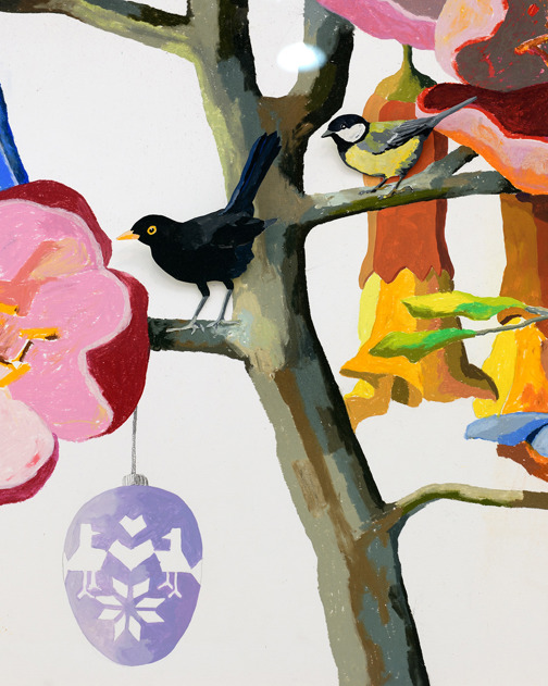 Erik Mattijssen maakte dit werk voor de centrale hal in opdracht van het Antoni van Leeuwenhoek Ziekenhuis. Het werk bestaat uit elf losse delen, die -ingelijst- een geheel vormen. Het werk representeert een binnenruimte die niet helemaal klopt, samengesteld als een collage waarin betekenisvolle elementen verwerkt zijn. Zoals je uit herinneringen in gedachten plekken reconstrueert. Het centrum van het werk is een levensboom die uitstijgt boven het dagelijkse. De tafel is doorsneden en de twee stoelen suggereren de aanwezigheid van twee mensen. Zij zijn niet meer samen, maar in de boom zijn ze voor altijd verbonden. Het werk is een eerbetoon aan een genereuze familie wier onvoltooid samenzijn niet tot bitterheid heeft geleid, maar tot het besef dat er plaats moet zijn en blijven voor optimisme en voor levenslust.