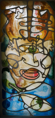 Jan Tervoort maakte dit glas in lood werk ter gelegenheid van het afscheid van prof. dr. G.M.M. Bartelink in 2007. Het werk is een vrije interpretatie en abstrahering van Bartelink.