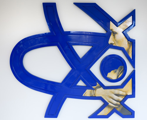 Blauwe wandreliëfs